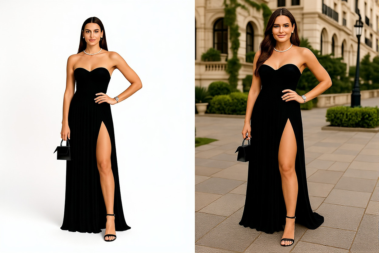 Transform studio fashion into elegant lifestyle scenes that elevate brand value. Premium locations, natural lighting, and editorial polish for campaigns and luxury brands.